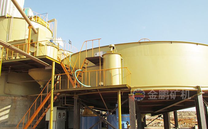 礦漿經高效改造化濃密機濃縮,溢流流入到循環水池,底流經膠泵打入到浸出槽,同時加入浸出藥劑,經過兩個浸出槽的預浸再進行活性炭吸附,活性炭加到最后的浸出槽中,按規定逐步向前面的浸出槽中運行,當活性炭運行到第三個浸出槽,含金達到要求時,用空氣提升器提到振動篩進行炭漿分離,礦漿回到浸出槽,載金炭送去解吸電解系統。