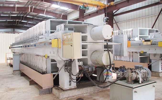 浸出槽最后的尾礦經緩沖槽由泵輸送到全自動廂式壓濾機,壓濾后的水流入循環水池以備循環利用,濾餅經帶運輸機運到尾礦堆場,卡車將尾礦運到尾礦庫。